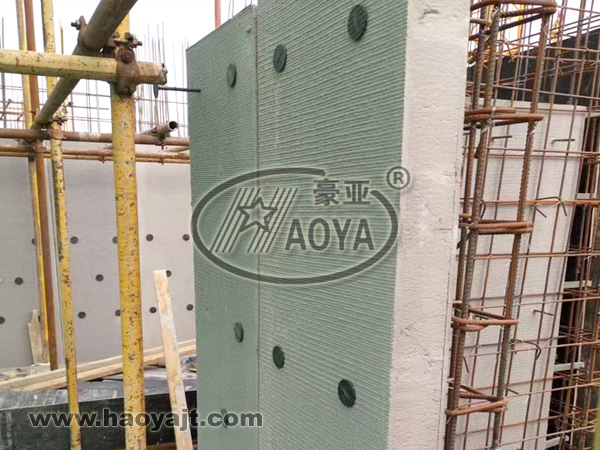 HY保溫結(jié)構(gòu)一體板,是由豪亞公司匠心制造生產(chǎn)的防火豎絲巖棉條、粘結(jié)層、保溫過度層,內(nèi)外側(cè)粘結(jié)加強(qiáng)層,加強(qiáng)類及連接件等部分構(gòu)成(見圖1)具有良好的保溫與耐久性能,并在現(xiàn)澆混凝土梁、柱、墻等施工中,外模板免拆作用的復(fù)合保溫板.作為復(fù)合保溫外模板,在施工中支護(hù)于結(jié)構(gòu)外側(cè),內(nèi)側(cè)澆筑混凝土,外側(cè)通過連接件,將一體板與混凝土牢固連接在一起,而形成的保溫結(jié)構(gòu)系統(tǒng),該系統(tǒng)屬于現(xiàn)澆鋼筋混凝土保溫結(jié)構(gòu)體系.適用于工業(yè),與民用建筑框架結(jié)構(gòu)、框剪結(jié)構(gòu),剪力墻結(jié)構(gòu)的柱.梁、外墻.地下定、頂板等現(xiàn)澆混凝上結(jié)構(gòu)工程:達(dá)到了一體化技術(shù)要求,實(shí)現(xiàn)建筑保溫與結(jié)構(gòu)同壽命的目的。